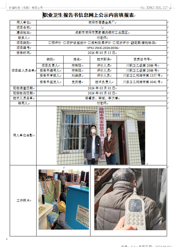 简阳市贾家蓉晏金具厂定期检测