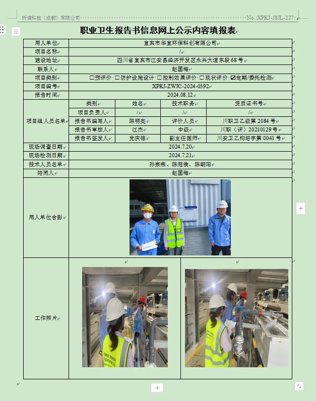 宜宾市华宜环保科创有限公司定期检测