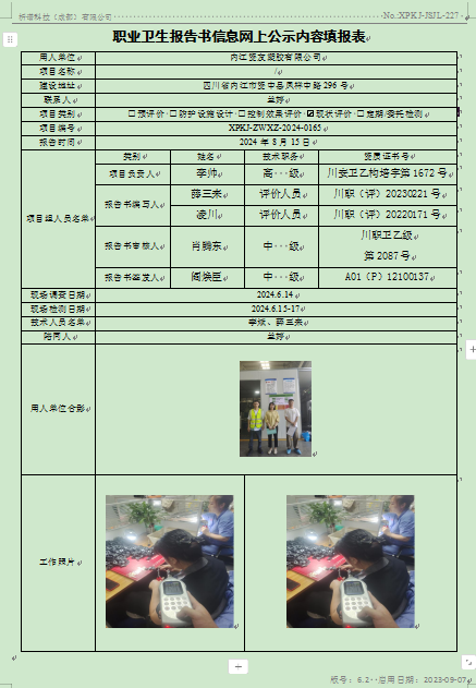 四川省滨江印务有限责任公司职业病危害因素定期检测