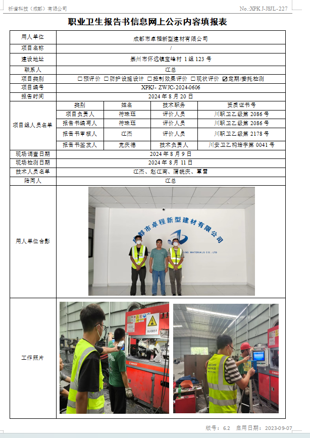 国能(绵竹)水电有限公司职业病危害因素现状评价