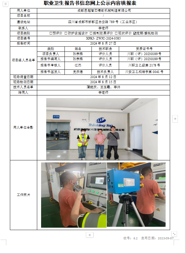 成都思越智芯精密机械制造有限公司定期检测