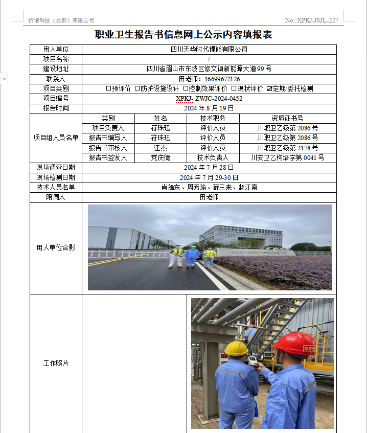 四川天华时代锂能有限公司定期检测