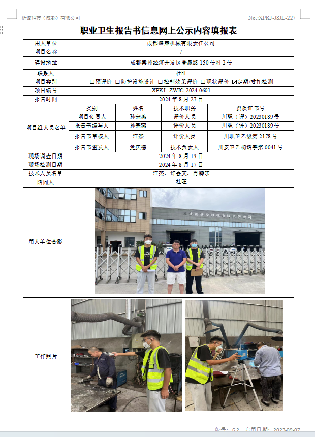 成都盛荣机械有限责任公司定期检测