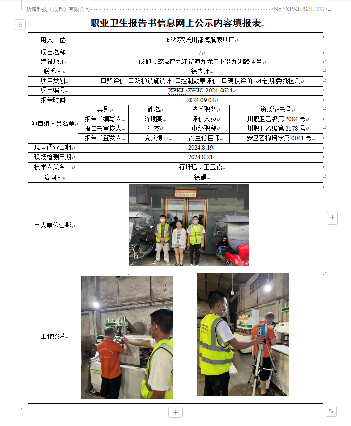 雅安市汇龙环保新材料有限公司职业病危害因素预评价
