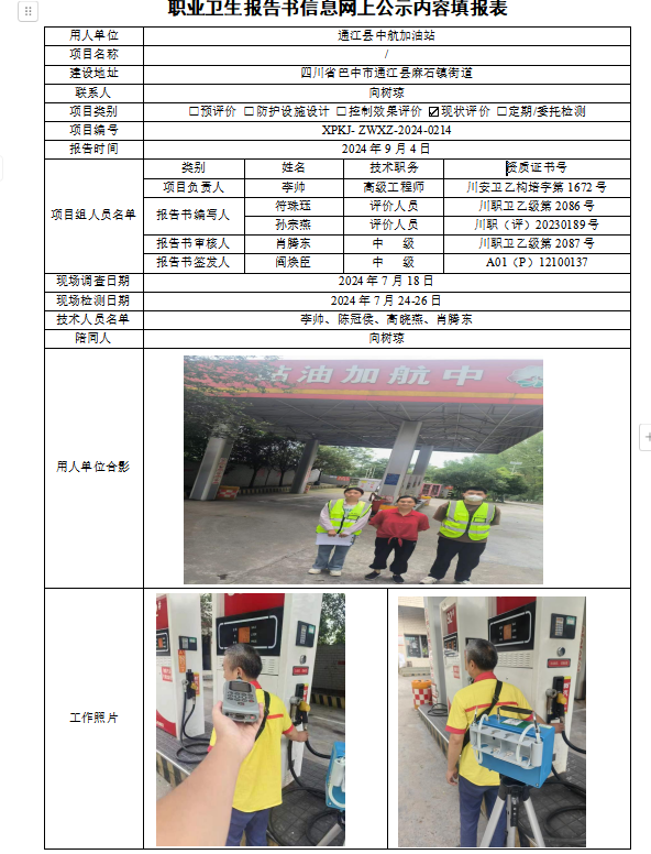 通江县中航加油站现状评价