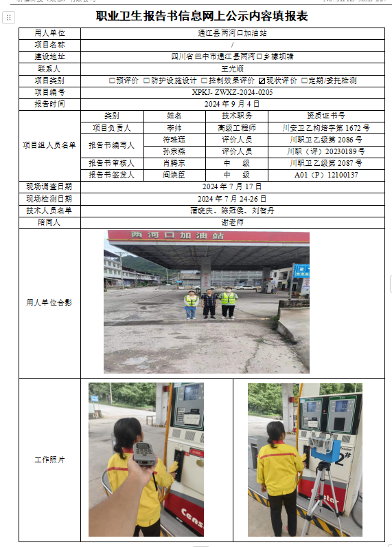 通江县两河口加油站现状评价
