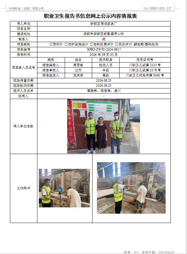 新都区琦龙家具厂定期检测