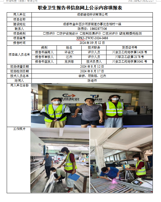 成都途径标识有限公司定期检测