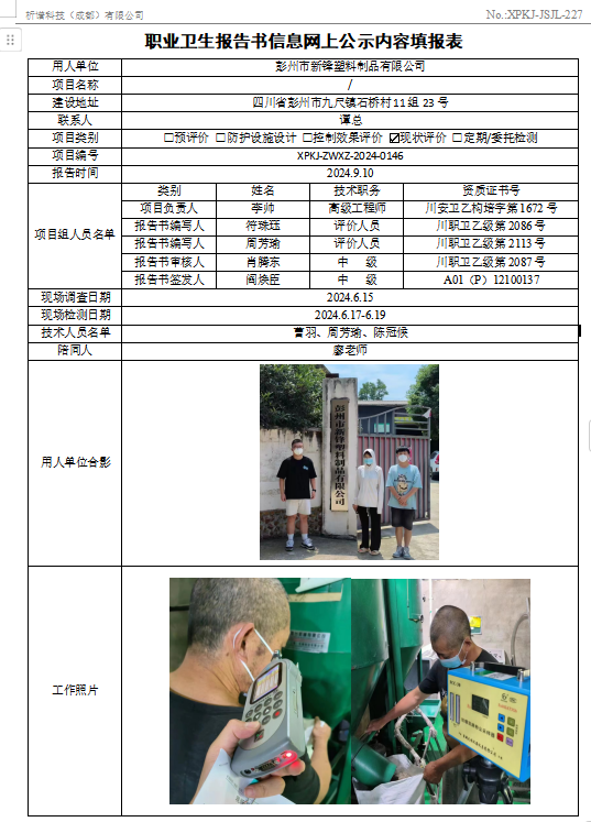 彭州市新锋塑料制品有限公司现状评价