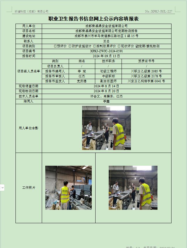 成都荣盛鼎安全设施有限公司定期检测