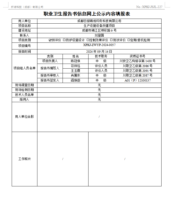 成都日报锦观印务科技有限公司预评价