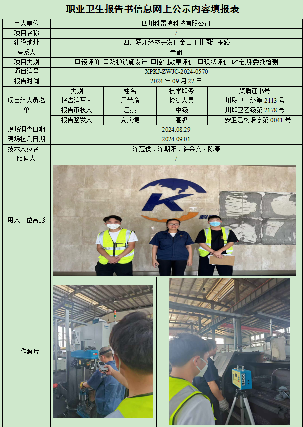 四川科雷特科技有限公司定期检测