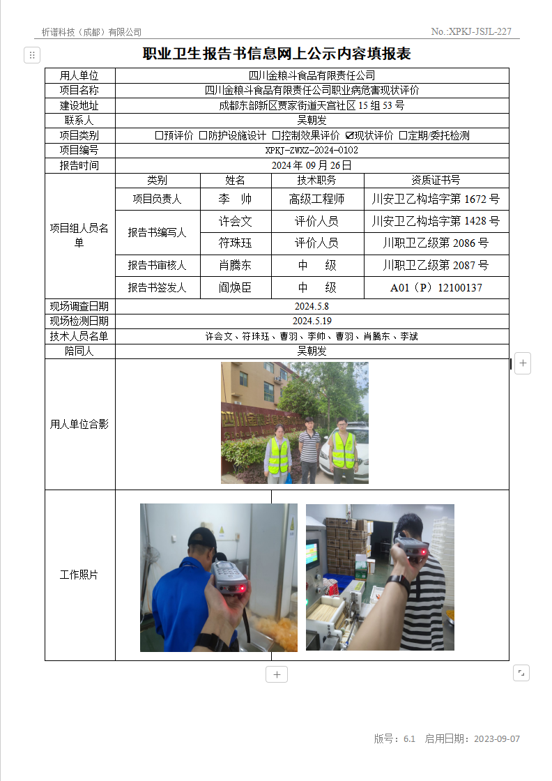四川金粮斗食品有限责任公司现状评价
