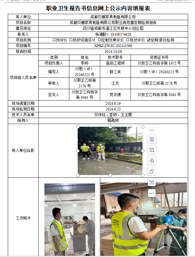 成都贝娜家具制造有限公司定期检测