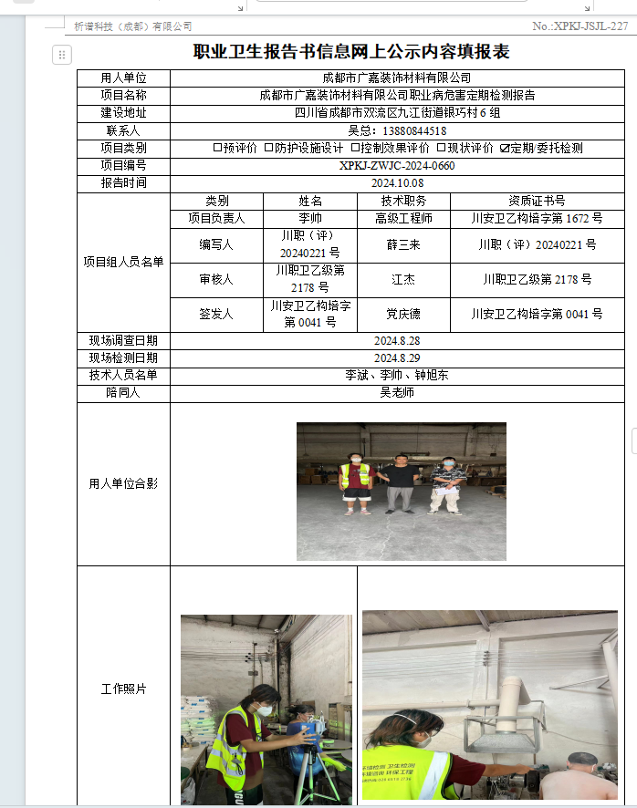成都市广嘉装饰材料有限公司定期检测