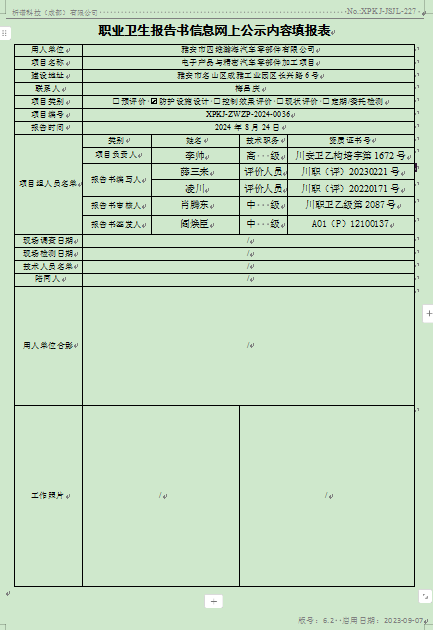 雅安市四维瀚海汽车零部件有限公司防护设施设计