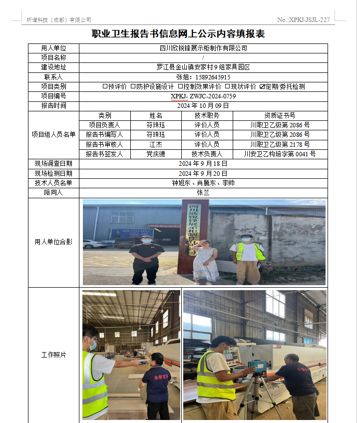 四川欣锐锋展示柜制作有限公司定期检测
