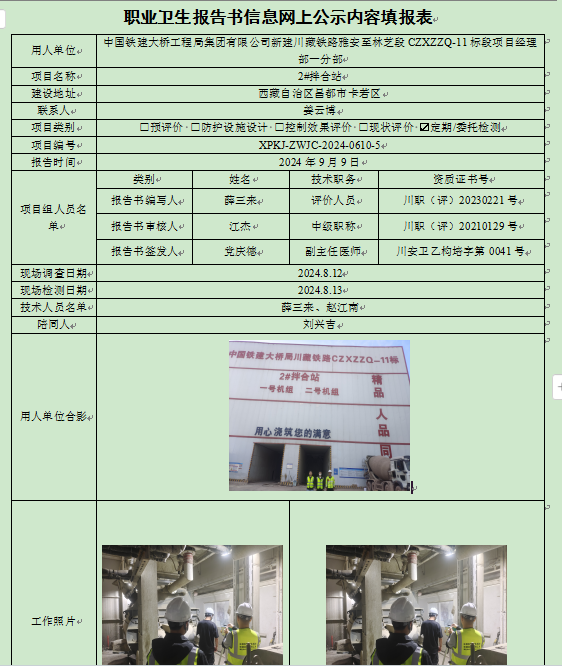 中国铁建大桥工程局集团有限公司新建川藏铁路雅安至林芝段CZXZZQ-11标项目经理部一分部2#拌合站定期检测