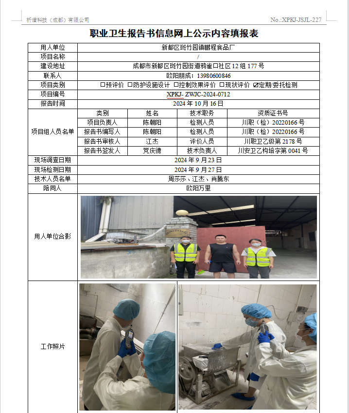 新都区斑竹园镇鹏程食品厂定期检测