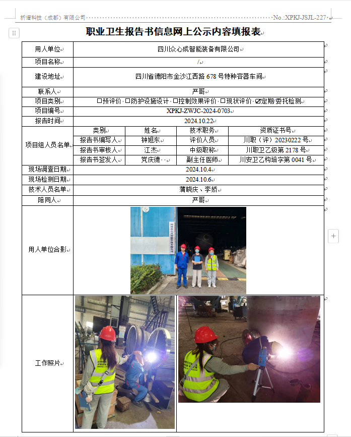 中国水利水电夹江水工机械有限公司德阳分公司定期检测