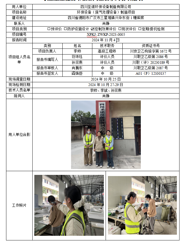 四川圣诺环保设备制造有限公司控制效果评价