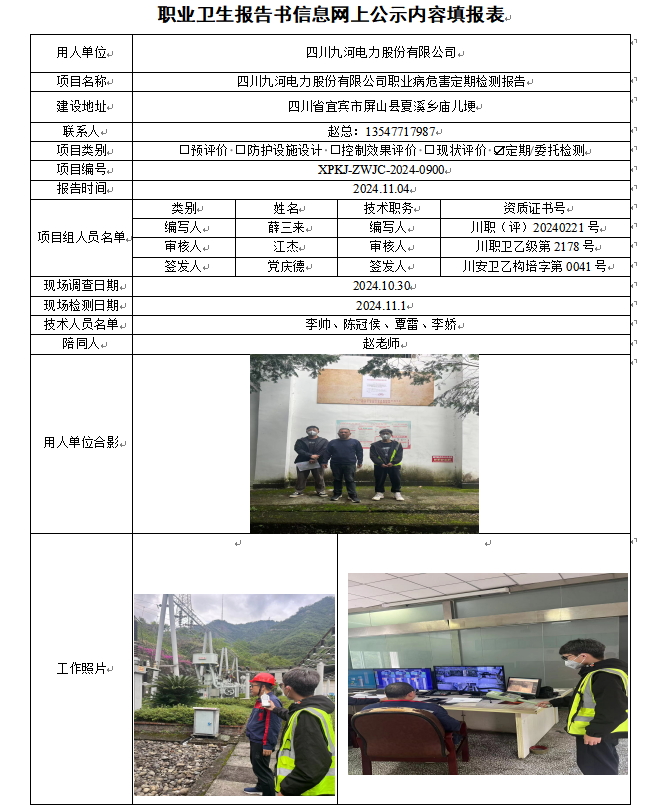 四川九河电力股份有限公司职业病危害定期检测