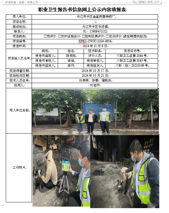 内江市中区金星耐磨铸钢厂职业病危害定期检测