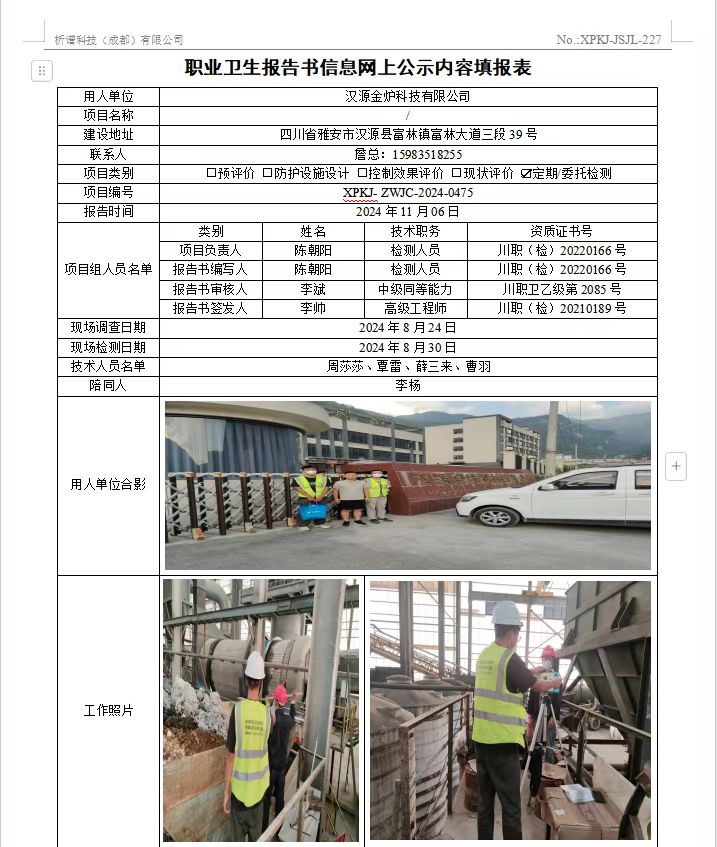 四川力丰绿建科技有限公司职业病危害因素定期检测