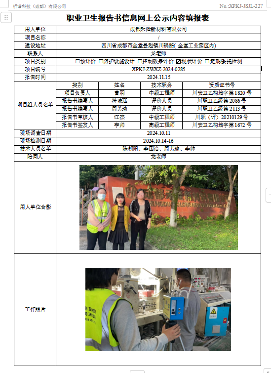 成都睿美水族用品有限公司职业病危害因素定期检测