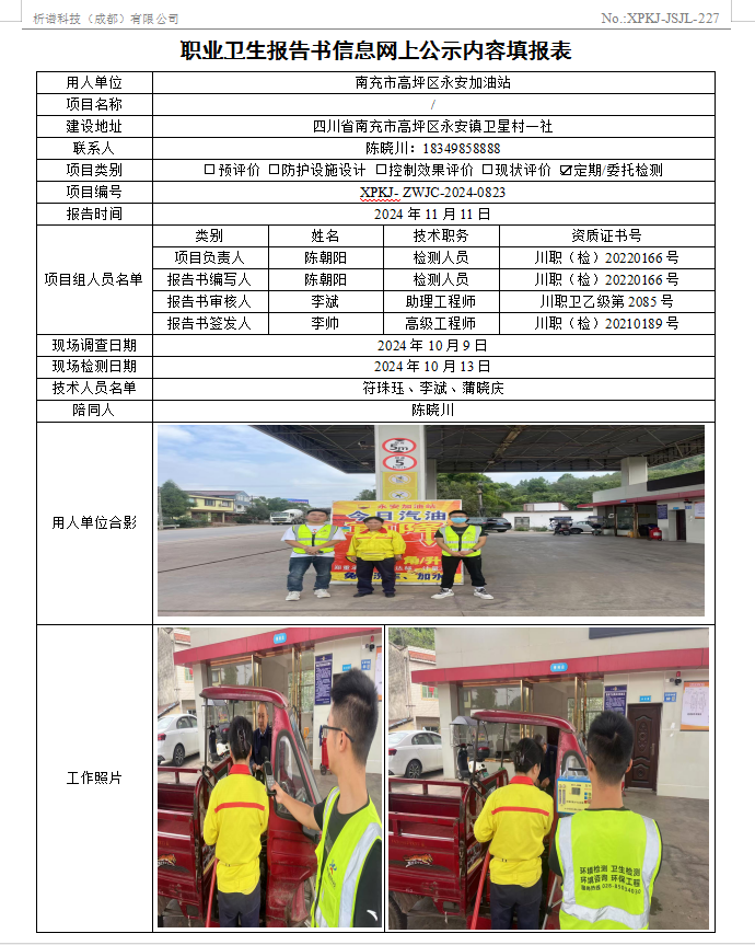 南充市高坪区永安加油站职业病危害因素定期检测