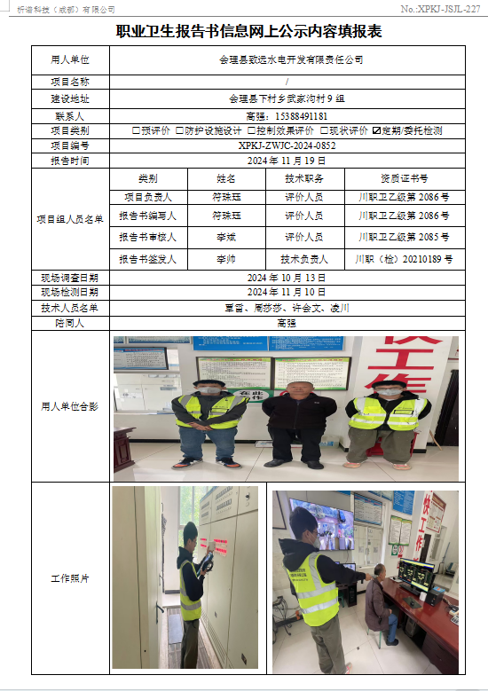 会理县致远水电开发有限责任公司职业病危害因素定期检测