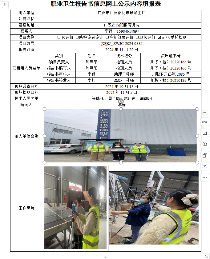 广汉市仁源钢化玻璃加工厂职业病危害因素定期检测