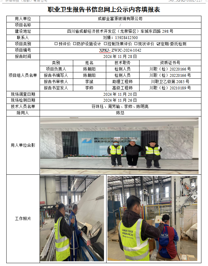 成都金富源玻璃有限公司职业病危害因素定期检测