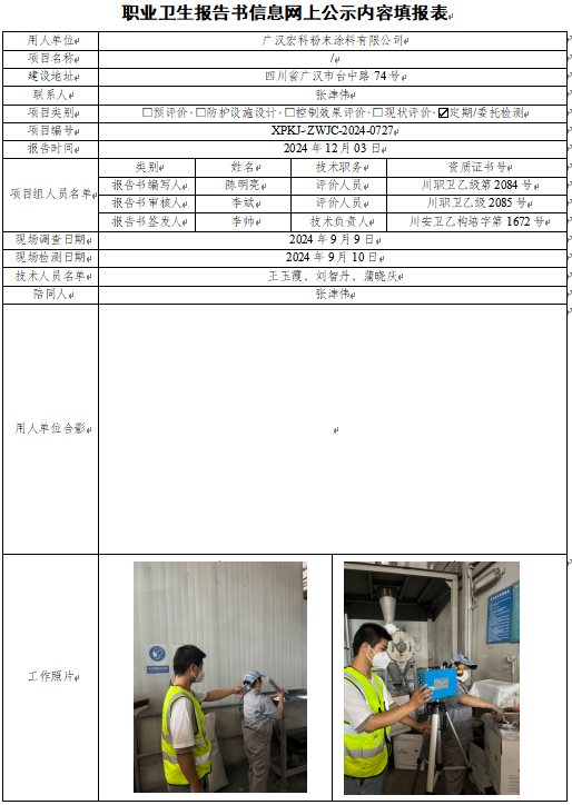 广汉宏科粉末涂料有限公司职业病危害因素定期检测