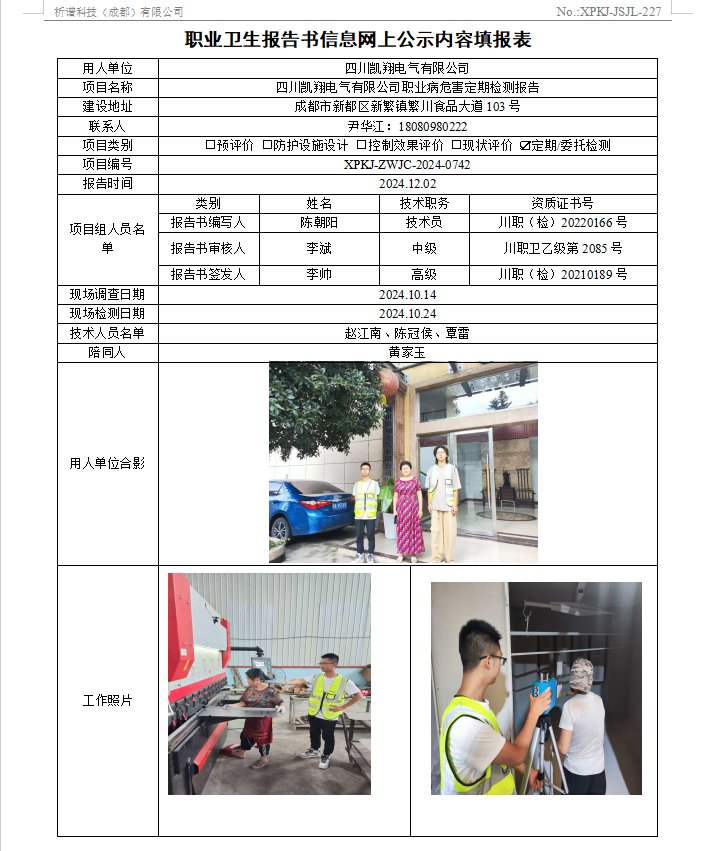 广汉宏科粉末涂料有限公司职业病危害因素定期检测