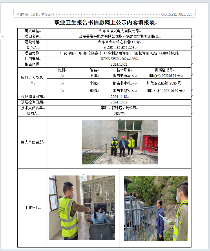 四川上之登新材料科技有限公司职业病危害因素现状评价