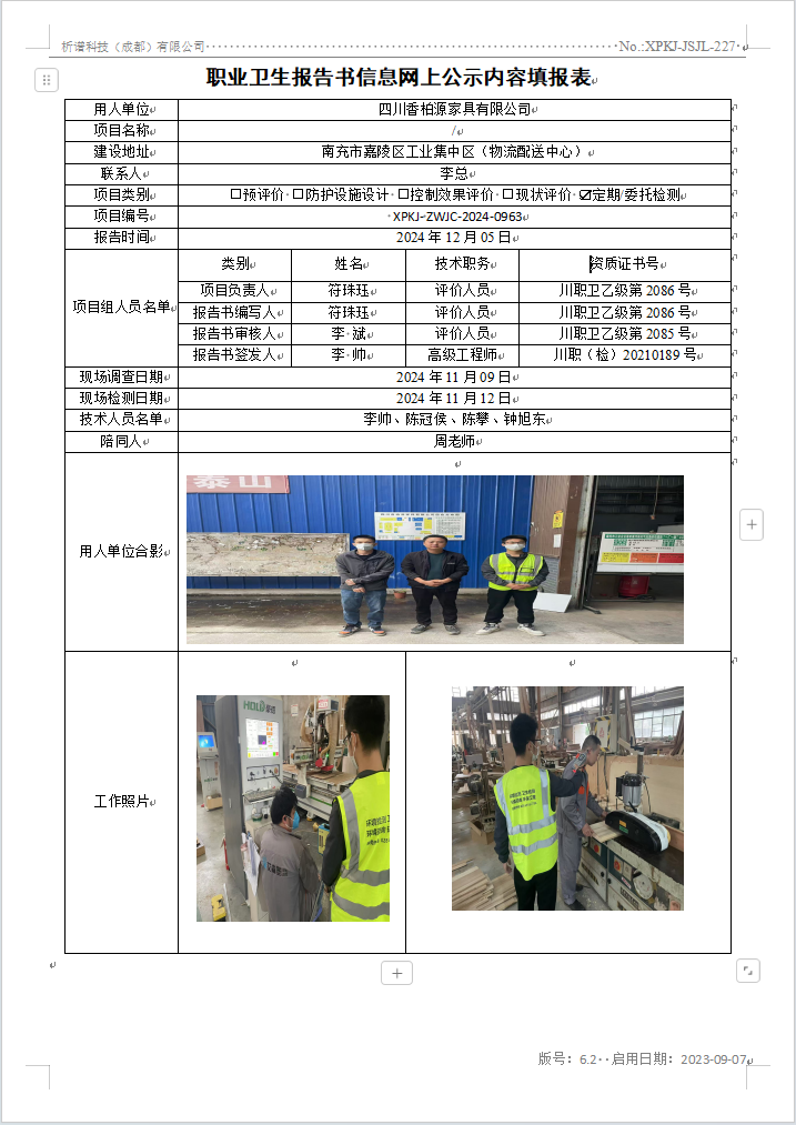 四川龙创新材料科技有限公司职业病危害因素定期检测