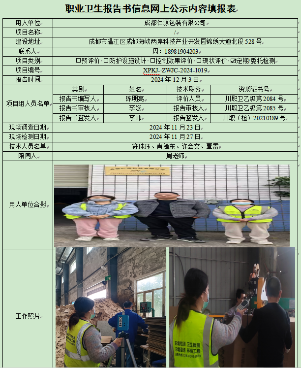 成都市宏羽新材料有限公司职业病危害因素定期检测