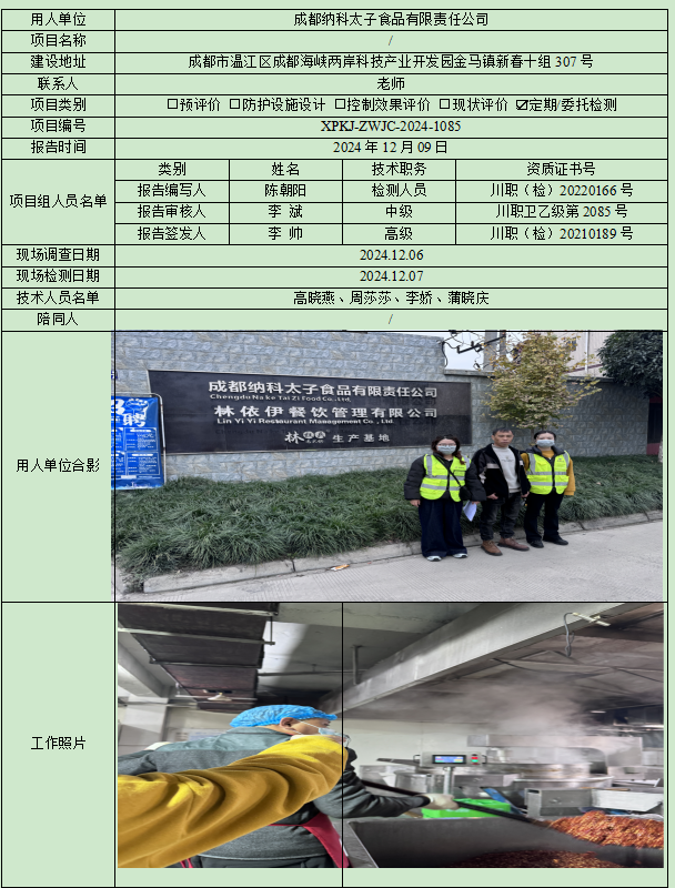 四川金淮源机电制造有限公司职业病危害因素定期检测