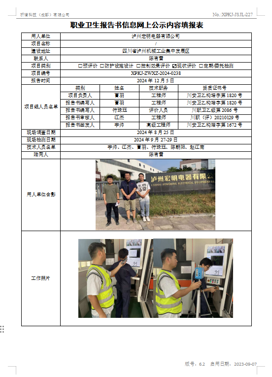 成都新蜀绿邦金淮环保新材料有限公司职业病危害因素控制效果评价