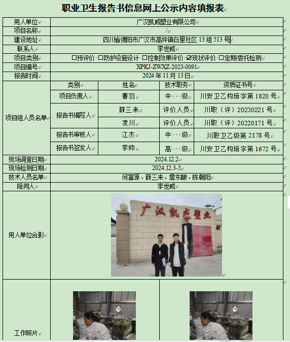 广汉凯威塑业有限公司职业病危害因素现状评价