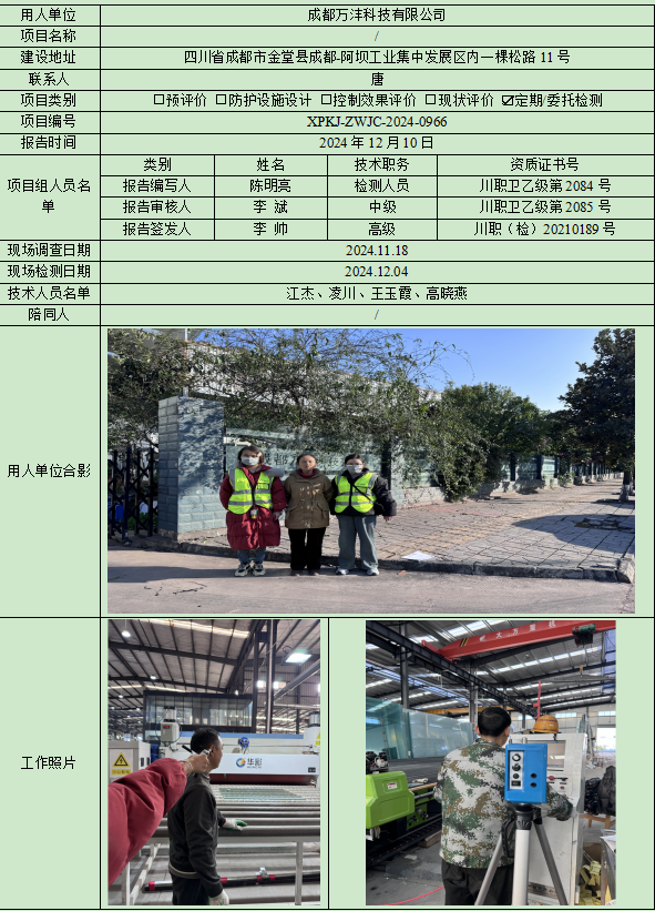 成都市艺境义齿技术有限公司职业病危害因素定期检测