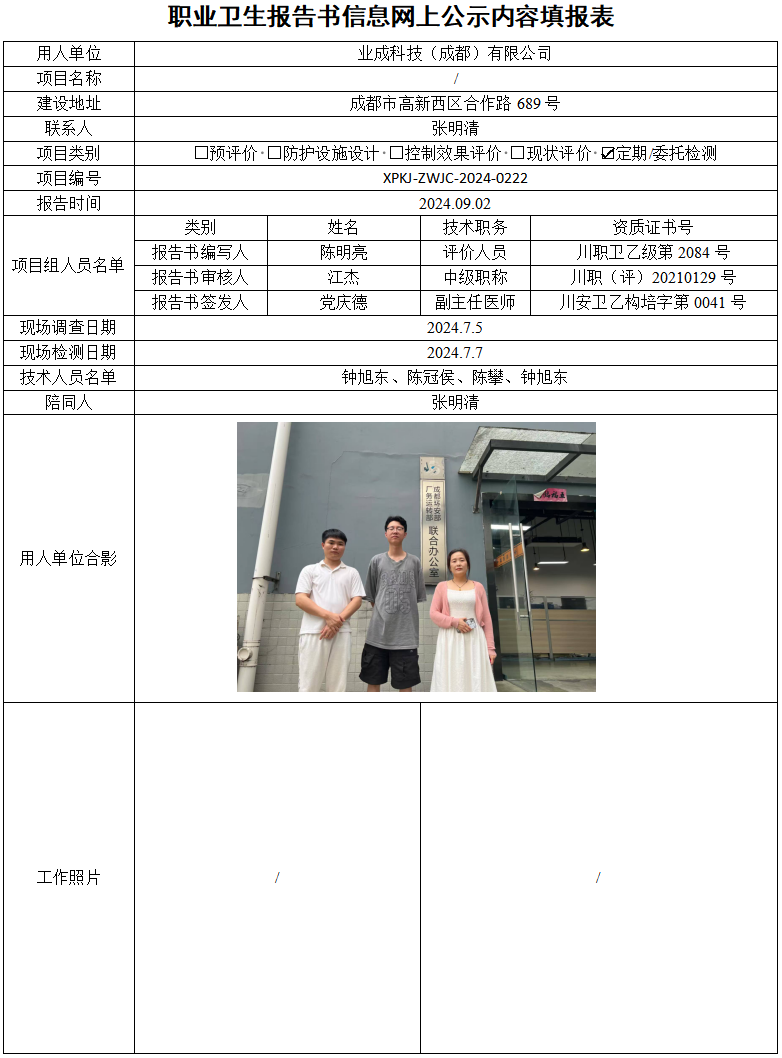 业成科技(成都)有限公司(N7栋1\2\3\4F)职业病危害因素定期检测