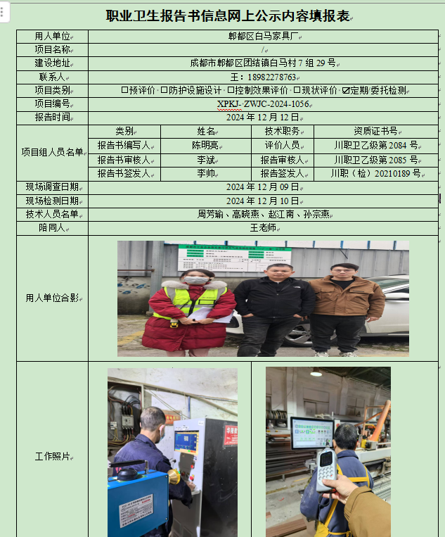 郫都区白马家具厂职业病危害因素定期检测