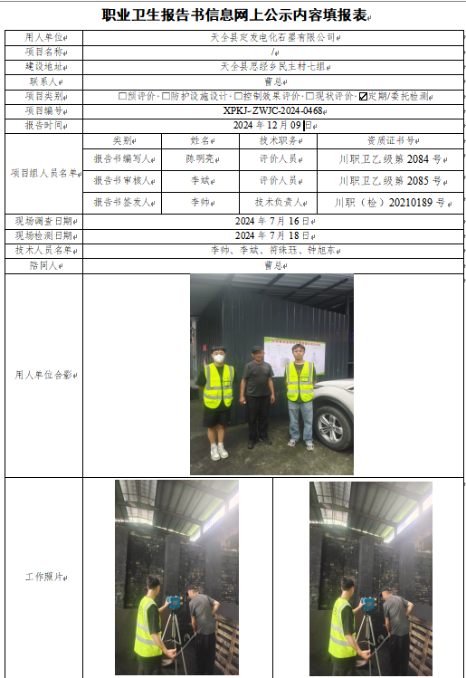 天全县定发电化石墨有限公司职业病危害因素定期检测