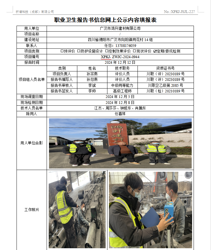 四川博天塑胶制品有限公司职业病危害因素定期检测