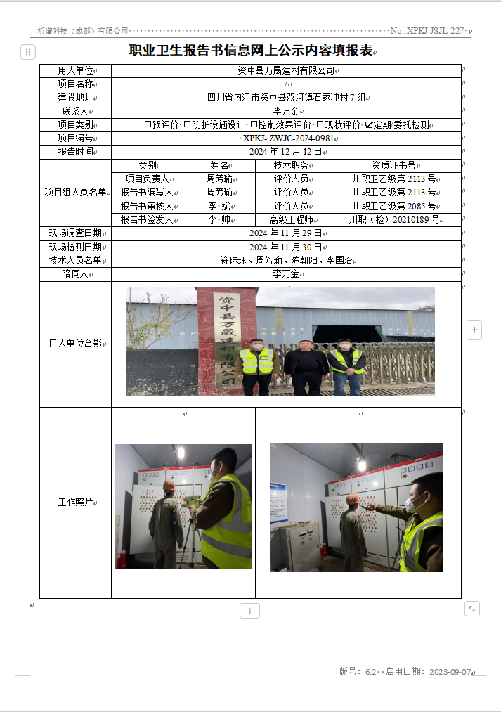 四川博天塑胶制品有限公司职业病危害因素定期检测