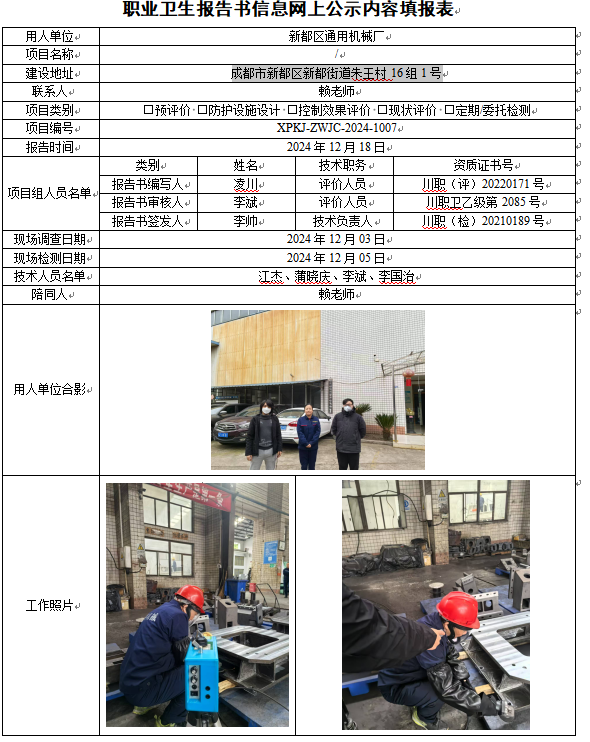 什邡新工金属材料有限公司职业病危害因素定期检测