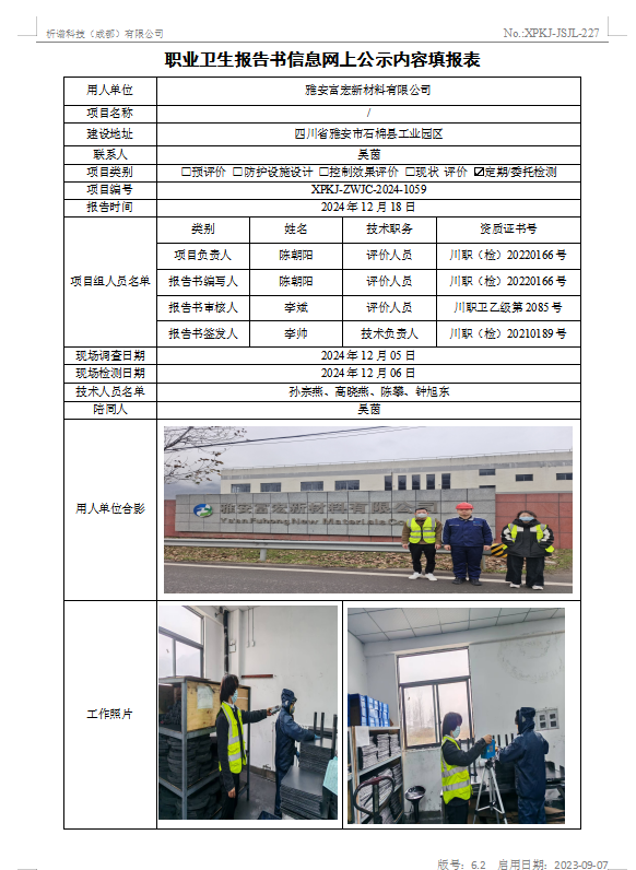 雅安富宏新材料有限公司职业病危害因素定期检测