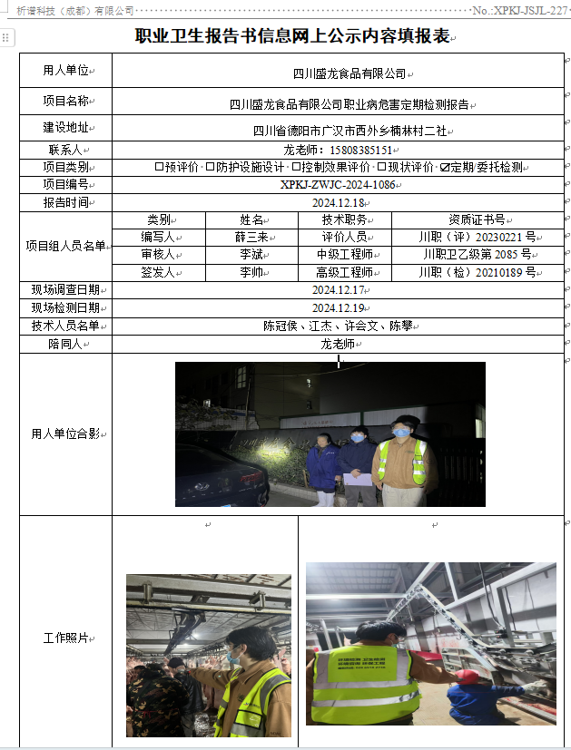 四川鑫运达汽车科技有限公司职业病危害因素定期检测